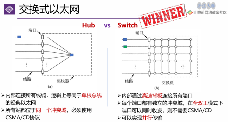 2. 信道的利用率为:d/(d+log2N) (低负载时)