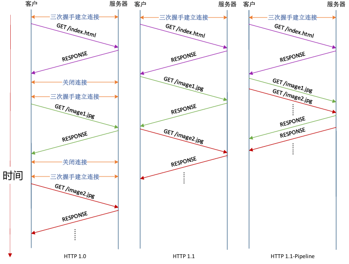 * 在相同的TCP连接上,服务器接收请求、响应;再接收请求、响应;响应后保持连接